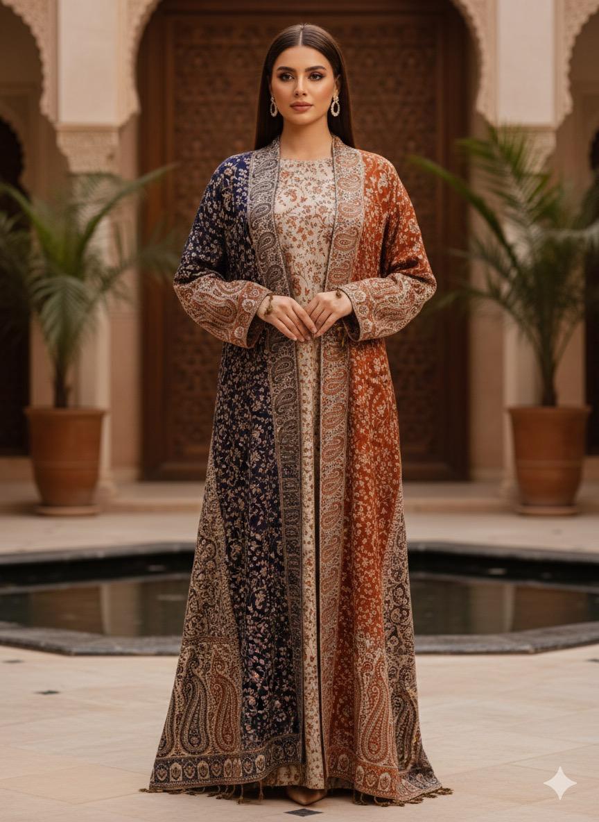 Elevate your modest fashion game with our Multi Colour Pashmina Abaya—where tradition meets bold self-expression. Crafted from luxuriously soft pashmina, this statement piece features stunning multi-colour detailing that refuses to blend into the background. The flowing silhouette drapes beautifully while the rich fabric ensures comfort throughout your day. Perfect for those who believe modest wear should be anything but ordinary, this abaya transforms your wardrobe into a canvas of colour and confidence. Make every entrance unforgettable.